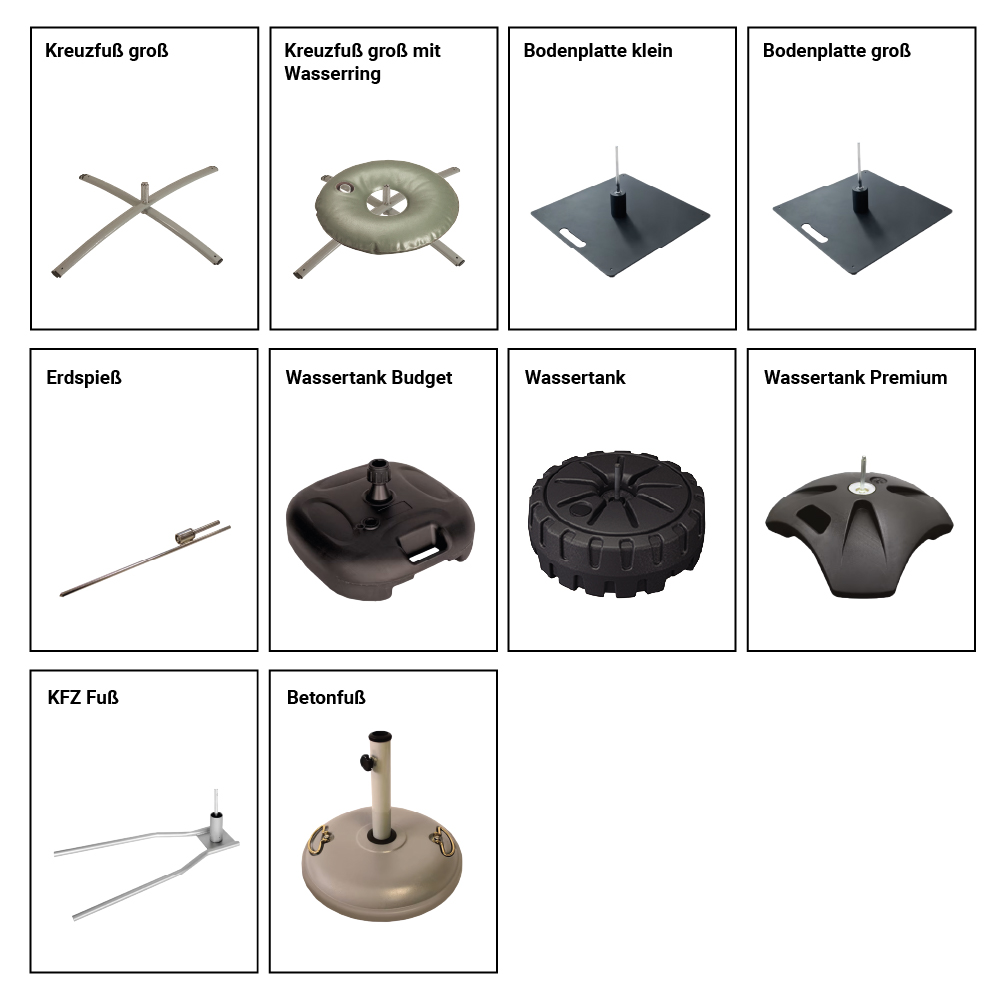 Dank der verschiedenen Standfüße, die für die Fahne erhältlich sind, kann der Standfuß an die jeweilige Größe, den Standort und den Untergrund angepasst werden, damit die Fahne überall stabil und sicher steht - egal ob auf Asphalt, Rasen, Sand oder Schnee. Soll die Fahne auf dem Boden stehen, so kann zwischen Kreuzfüßen, Bodenplatten, Wassertank, KFZ-Fuß oder ein Betonfuß gewählt werden, soll sie im Boden verankert werden, empfiehlt sich die Verwendung eines Erdspießes. Bei Kreuzfuß und Bodenplatte kann zur zusätzlichen Beschwerung ein Wasserring verwendet werden, um die optimale Standfestigkeit zu gewährleisten. Bei guter Pflege kann die Fahne eine Lebensdauer von sechs bis acht Monaten erreichen.